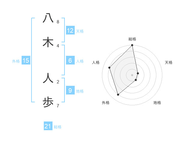 八木 人歩さんの総格は21画の5点