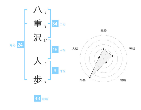 八重沢 人歩さんの総格は43画の2点!