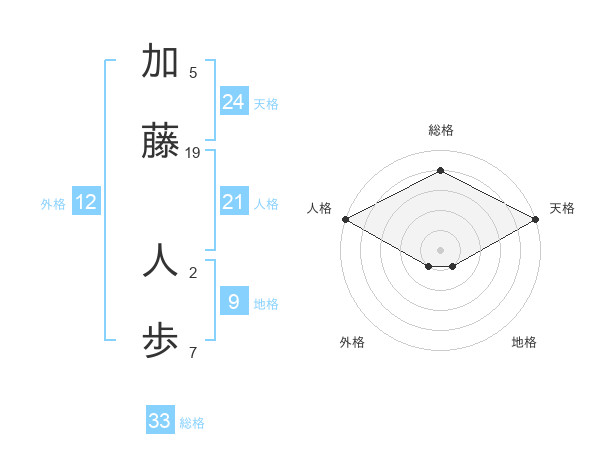 加藤 人歩さんの天格は24画の5点!