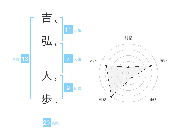 吉弘 人歩さんを姓名の画数から五運を鑑定