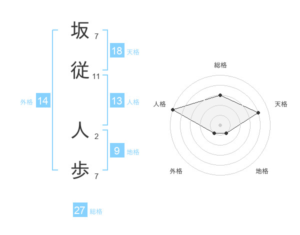 坂従 人歩さんの総格は27画の3点!