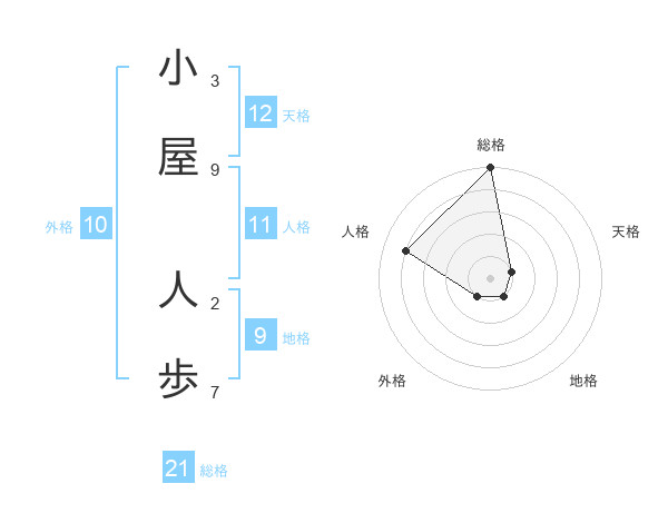 小屋 人歩さんの総格は21画の5点!