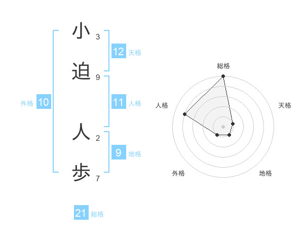小迫 人歩さんの総格は21画の5点!