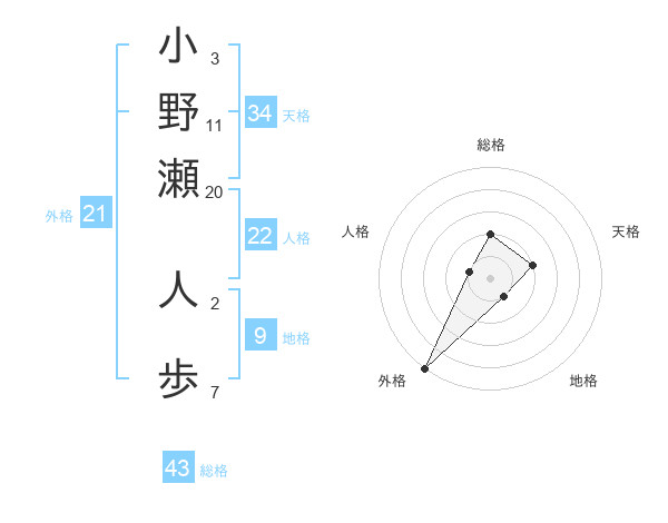 小野瀬 人歩さんを姓名の画数から五運を鑑定