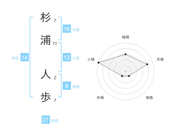 杉浦 人歩さんの総格は27画の3点!