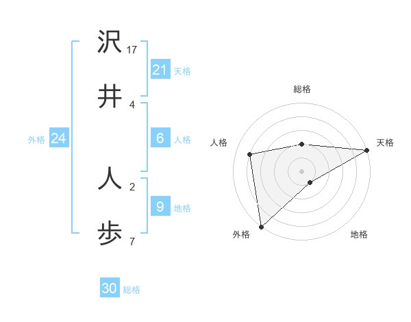 沢井 人歩さんを姓名の画数から五運を鑑定