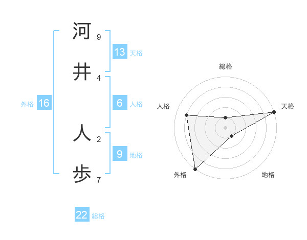 河井 人歩さんの総格は22画の1点!