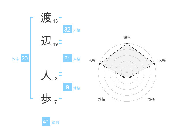 渡辺 人歩さんの総格は41画の5点