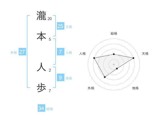 瀧本 人歩さんを姓名の画数から五運を鑑定