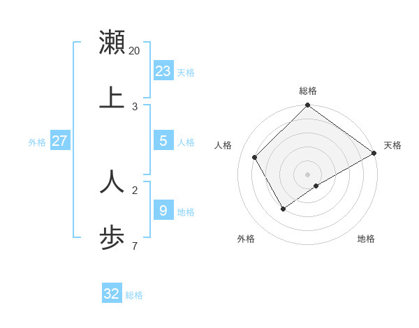 瀬上 人歩さんを姓名の画数から五運を鑑定