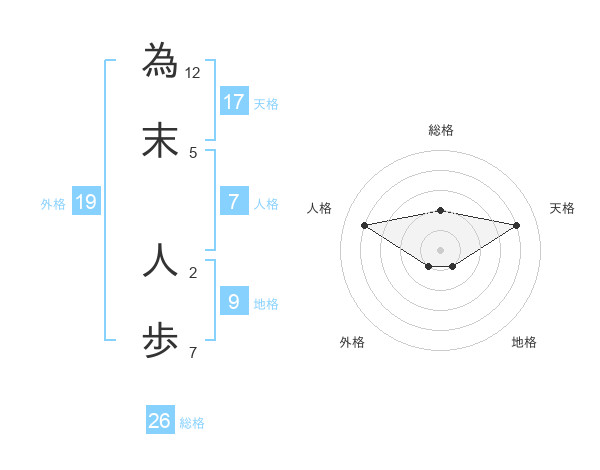 為末 人歩さんの天格は17画の4点!