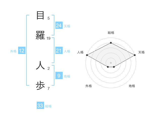 目羅 人歩さんの天格は24画の5点!