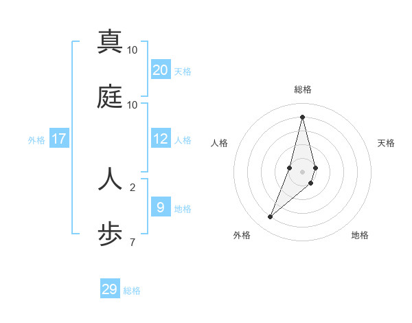 真庭 人歩さんを姓名の画数から五運を鑑定