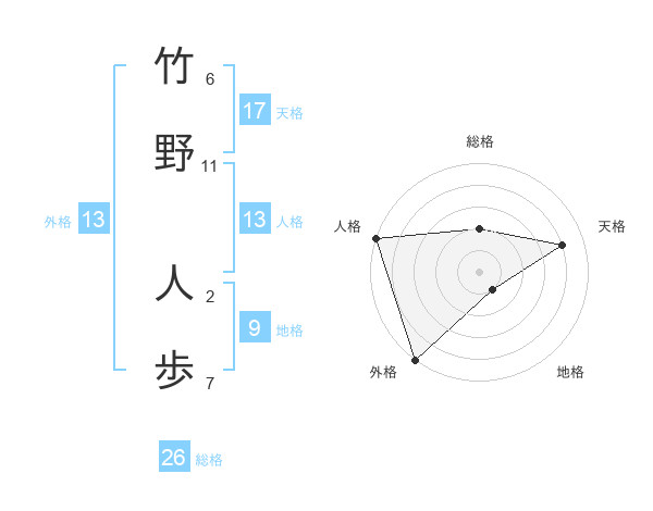竹野 人歩さんの総格は26画の2点!