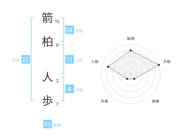 箭柏 人歩さんの総格は33画の4点!