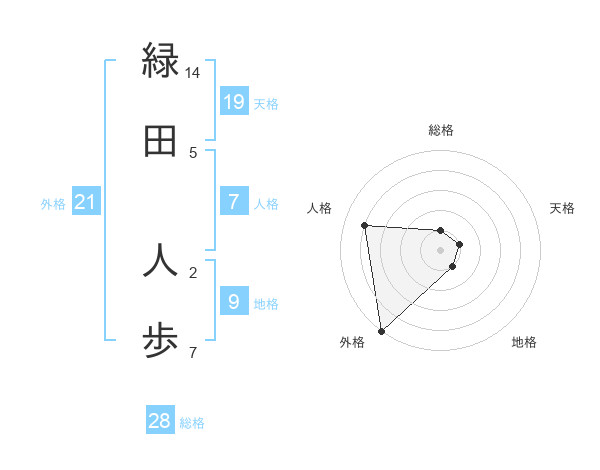 緑田 人歩さんを姓名の画数から五運を鑑定