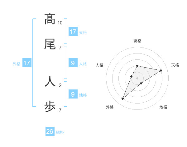 髙尾 人歩さんの総格は26画の2点!