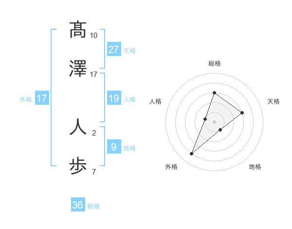 髙澤 人歩さんを姓名の画数から五運を鑑定