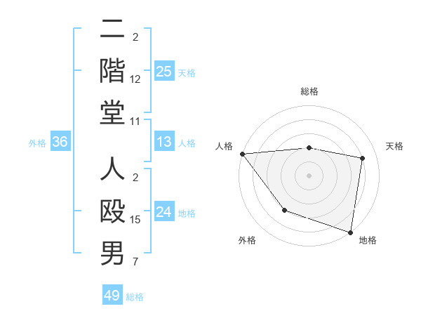 二階堂 人殴男さんの外格は36画の3点!