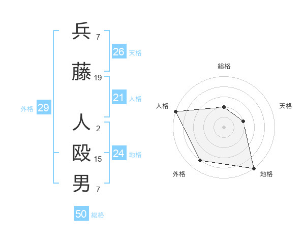 兵藤 人殴男さんの総格は50画の2点!