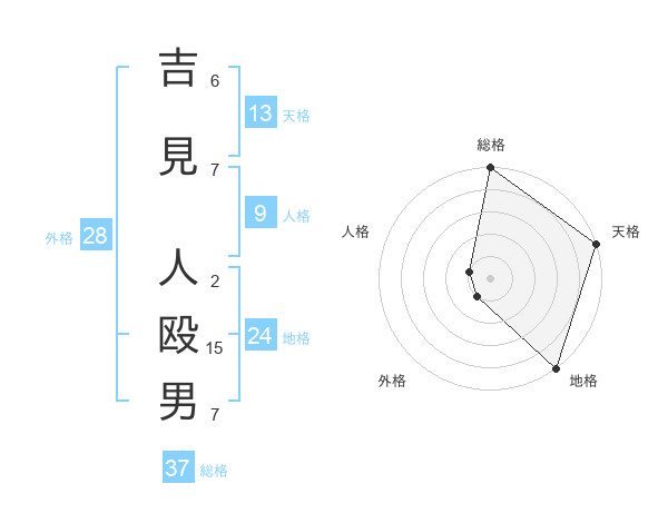 吉見 人殴男さんを姓名の画数から五運を鑑定