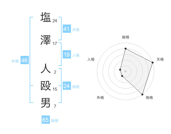 塩澤 人殴男さんを姓名の画数から五運を鑑定