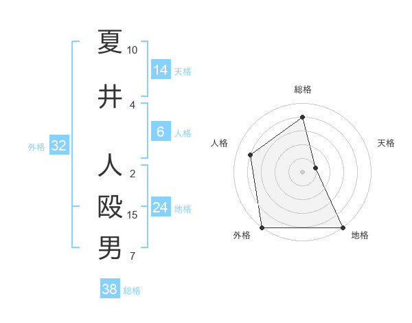 夏井 人殴男さんを姓名の画数から五運を鑑定