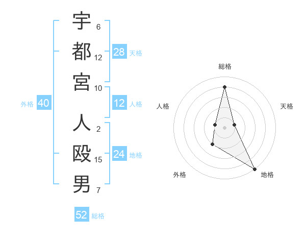 宇都宮 人殴男さんを姓名の画数から五運を鑑定