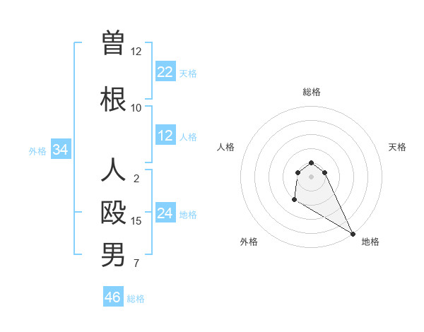 曽根 人殴男さんの外格は34画の2点!