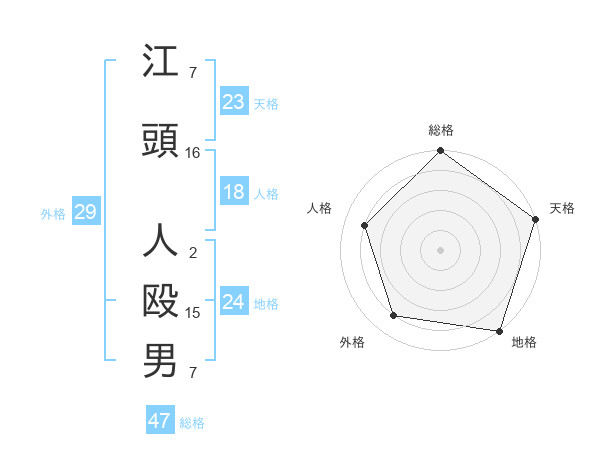 江頭 人殴男さんを姓名の画数から五運を鑑定