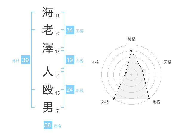 海老澤 人殴男さんを姓名の画数から五運を鑑定