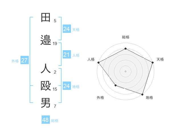 田邉 人殴男さんを姓名の画数から五運を鑑定