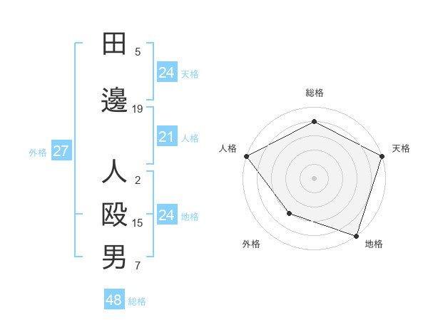 田邊 人殴男さんを姓名の画数から五運を鑑定