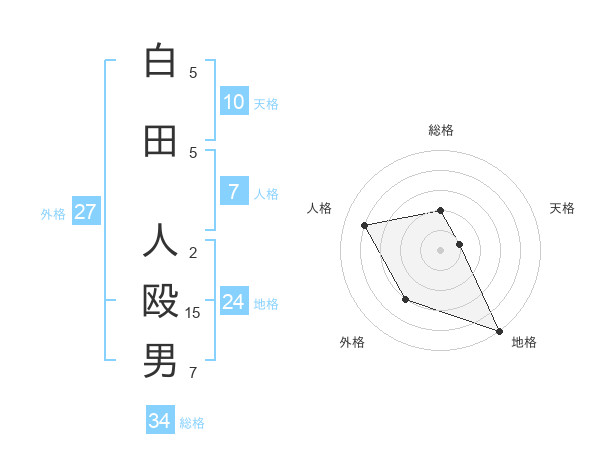 白田 人殴男さんを姓名の画数から五運を鑑定