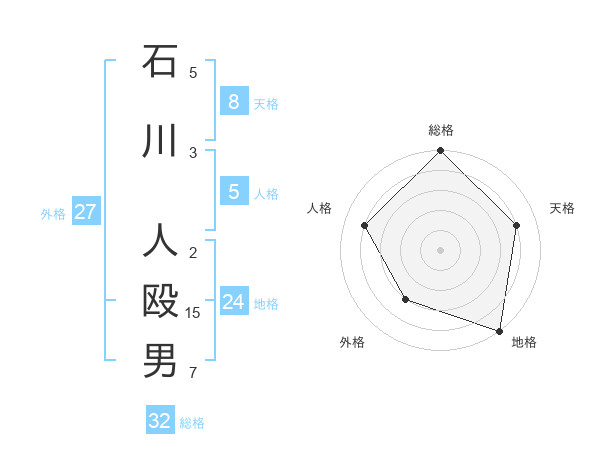 石川 人殴男さんを姓名の画数から五運を鑑定