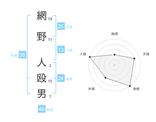 網野 人殴男さんを姓名の画数から五運を鑑定