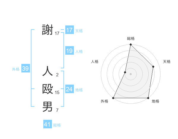 謝 人殴男さんの外格は39画の5点!