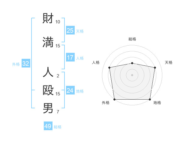 財満 人殴男さんの総格は49画の2点!