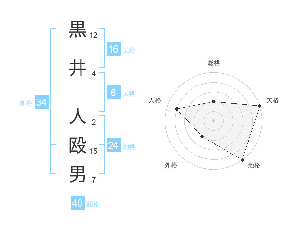 黒井 人殴男さんの外格は34画の2点!