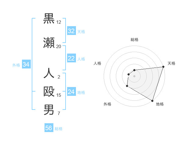 黒瀬 人殴男さんの外格は34画の2点!