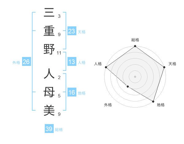 三重野 人母美さんを姓名の画数から五運を鑑定
