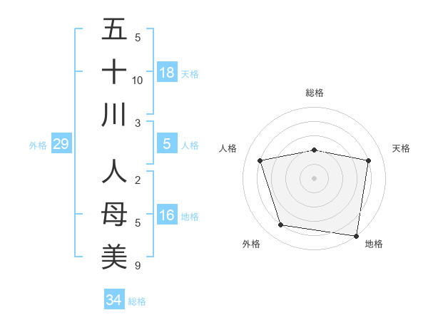 五十川 人母美さんを姓名の画数から五運を鑑定