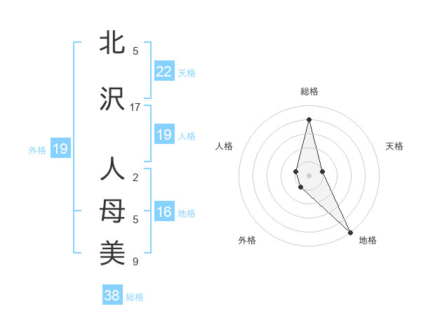 北沢 人母美さんの総格は38画の4点!