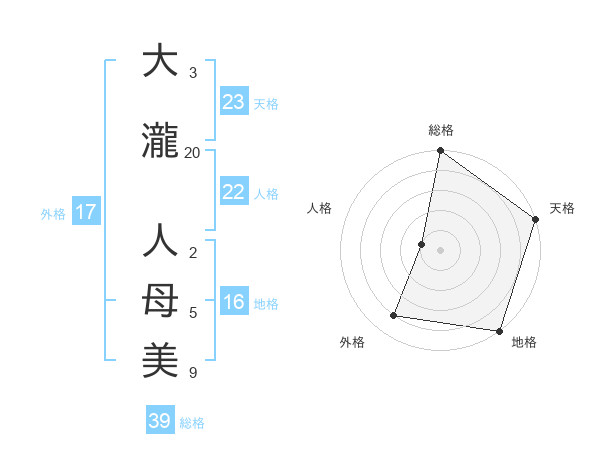大瀧 人母美さんを姓名の画数から五運を鑑定
