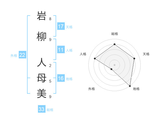 岩柳 人母美さんの総格は33画の4点!