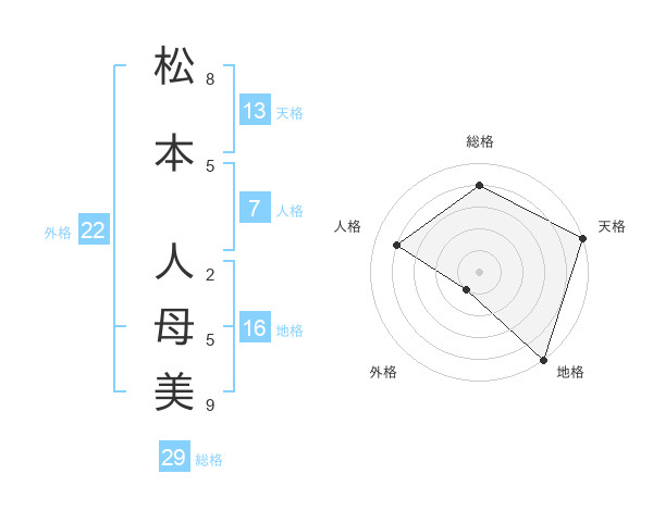 松本 人母美さんの総格は29画の4点!