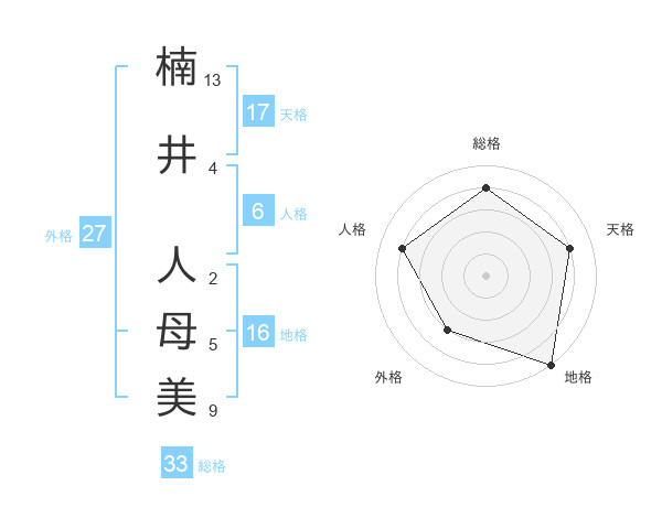 楠井 人母美さんを姓名の画数から五運を鑑定