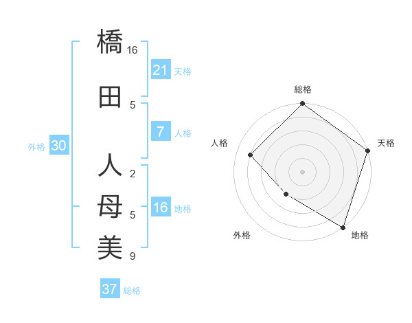 橋田 人母美さんを姓名の画数から五運を鑑定