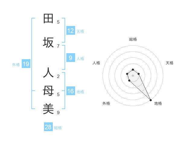 田坂 人母美さんの地格は16画の5点!