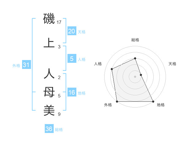磯上 人母美さんの外格は31画の5点!